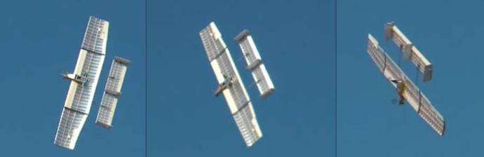 For this flight they had an airborne key chain camera mounted above the wing on the tail boom looking aft. They had expected to witness the activities of the elevator and model pitch upsets, but didn't get the aim right. Nonetheless when viewed as side by side videos ground and airborne they were able to get a much better view of the model's behavior. The next flight will aim this camera towards the wing tips and ailerons. The surfaces will also be tufted like the big boys do when trying to understand airflows.