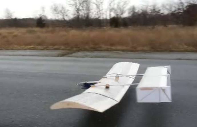 The Widener students have continued the development of their SAE Aero Competition entry with a great deal of frustrating results. The fundamental problem is one of roll and directional control. Basically the airplane falls off to either side and does not respond to aileron correction inputs, as you see in these photos from the flight movie.
