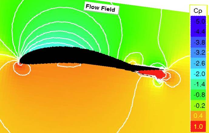 So the change was first examined analytically. Computing the pressure distribution similar to those above using Profili Pro proved too hard to conquer, but one of the Widener guys used Martin Heperle's javafoil to produce these pressure distributions. The stagnation (high) pressure behind the split aileron is clearly apparent so it was expected the desired proverse yaw and favorable roll would be achieved with this approach. All that was necessary was to make the repairs to the model from the last arrival and incorporate the split ailerons.
