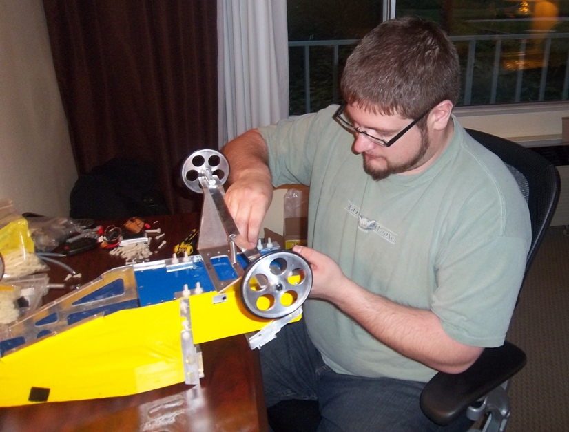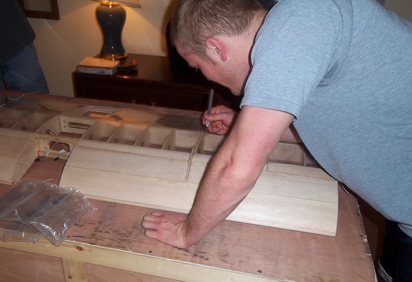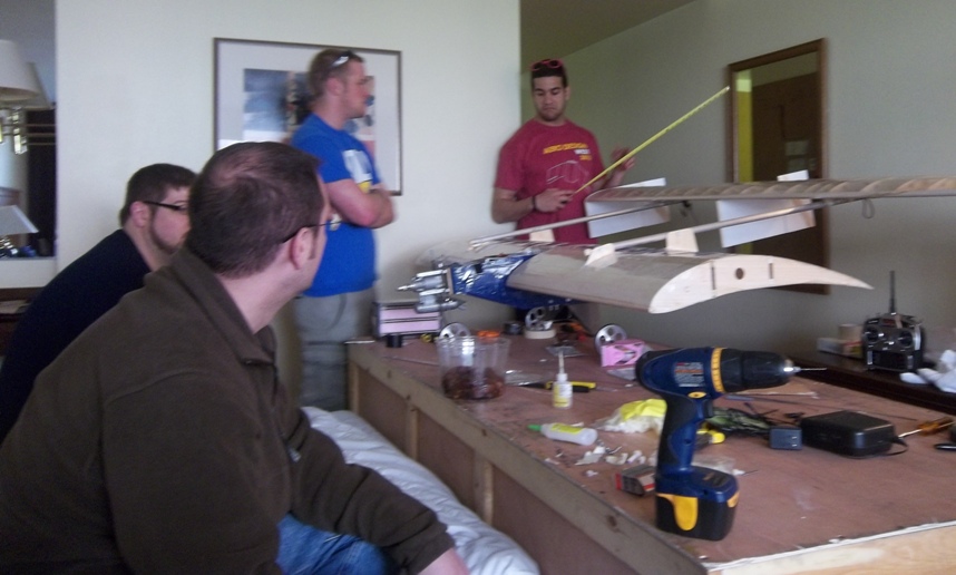 The evening's task is to change out the engine and balance the model laterally; a problem discovered when the pilot asked the team to check it.