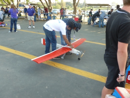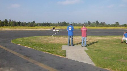 Our initial pilot, recruited by Dave during the AMA Expo in January, was unavailable today so the team had to seek out another one. As it happened the young man recruited turned out to be the son of the original pilot, a very experience one in his own right as, among other things, he had flown models at the last four SAE West events.