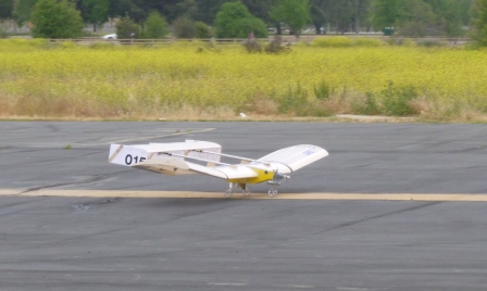 The first flight went very well although the performance was down. but the control seemed adequate as the pilot made a smooth takeoff, turn downwind and then turn to a smooth landing. A second flight was made with a different propeller which had indicated superior performance in a prior analysis. In the event the pilot was barely able to complete the circuit but made a satisfactory landing with out damaging the model.