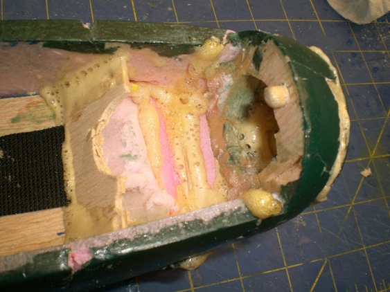 Here you can see that I made sure the glue would fill all the voids in both the joints and other cracks in the structure. This glue is messy to apply and messy in expanding beyond the repair, but it is fairly easy to clean up with a razor, saw or sanding.